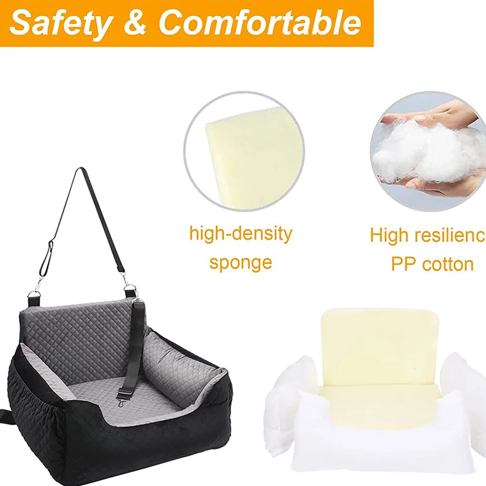 3. Comfortable Travel Experience: The pet car seat travel bed is filled with PP cotton and polyester fiber, providing optimal support and comfort for your pet during car trips. The high-quality velvet fabric ensures warmth and durability. Your pet will love the cozy booster seat, and you’ll appreciate the lasting quality of this pet car seat travel bed.