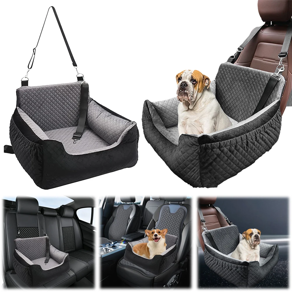 Dog Car Seat Bed Washable Dog Booster Seat with Storage Pocket Pet Car Seat Travel Bed Non-Slip Base Dog Sofa Cushion Detachable